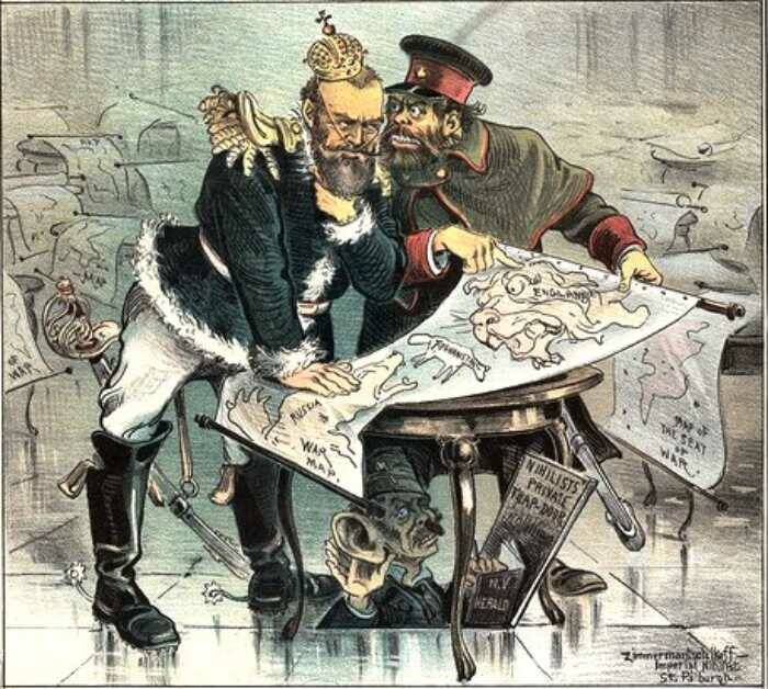 Политика российских империалистических дипломатов была жёстче и решительнее, чем у других государств. При любой возможности они стремились к аннексии. Государственная политика напоминала хищническую природу орла, избранного символом государства. Это естественно, поскольку русские капиталисты понимали, что их продукция не может конкурировать на открытых рынках. Они стремились к монопольным рынкам, лишённым конкуренции. Аннексия Бухары и Хивы, контроль над Северным Ираном — примеры такой политики, где русские капиталисты не сталкиваются с конкурентами.